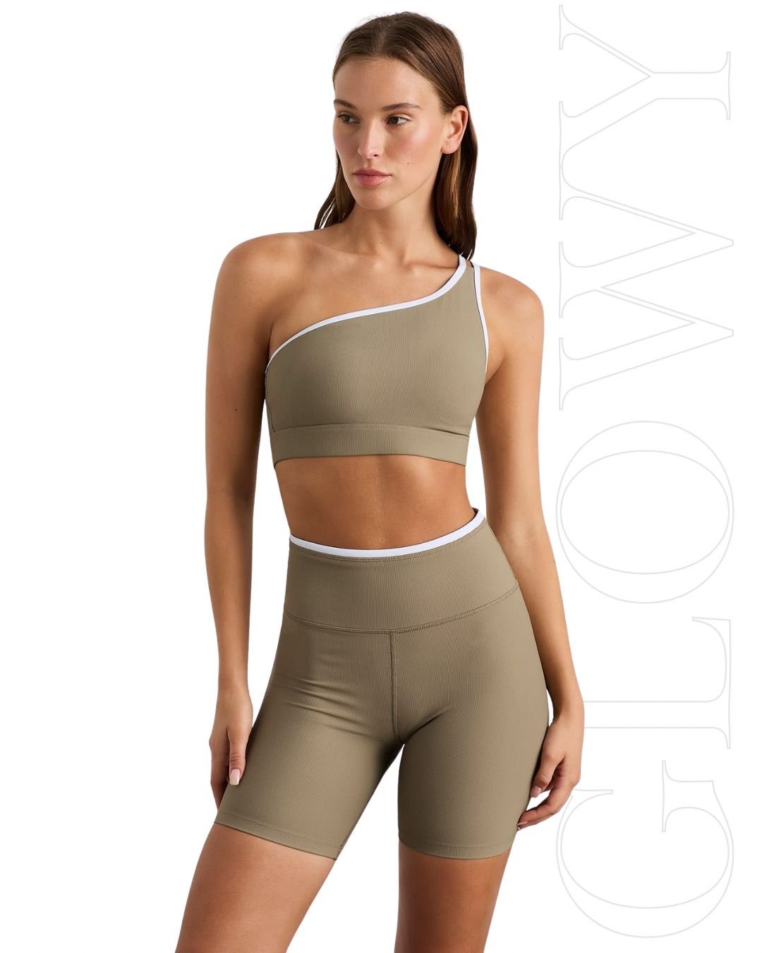 Top assimétrico com recorte moderno e legging de cintura alta, em tom cinza esverdeado. Produzido em tecido de alta compressão e elasticidade, proporciona sustentação perfeita e liberdade nos movimentos. Disponível do P ao G.